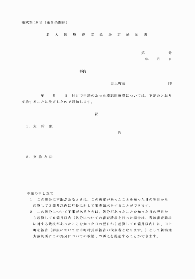 第1条 この規則は、田上町老人医療費助成に関する条例(昭和58年田上町条例第2号。以下「条例」という。)の施行に関し必要な事項を定めるものとする。