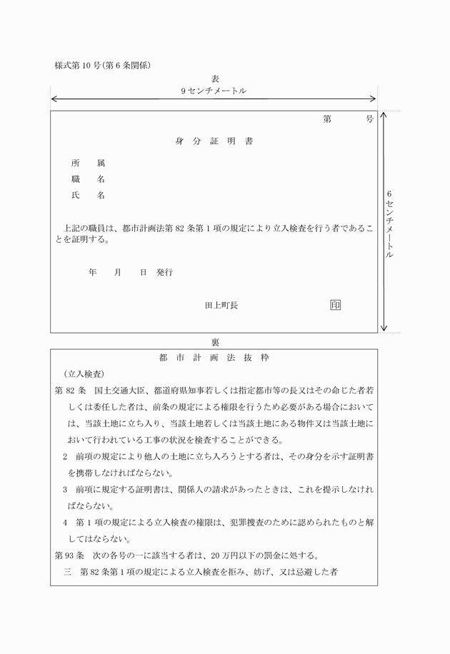 第6条 法第82条第2項の規定による身分を示す証明書は、様式第10号のとおりとする。