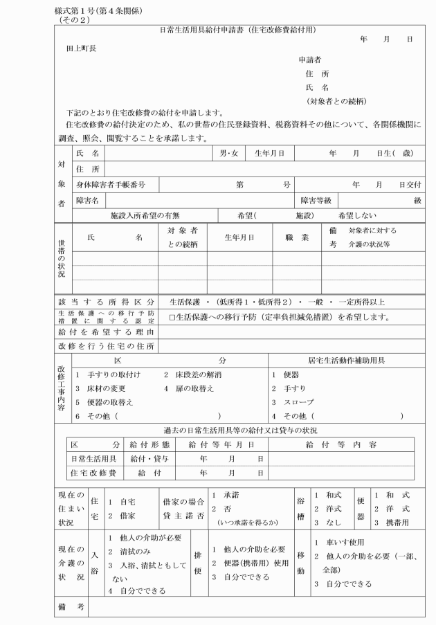 (2) 田上町住宅改修費給付事業実施要綱(平成12年田上町要綱第10号)